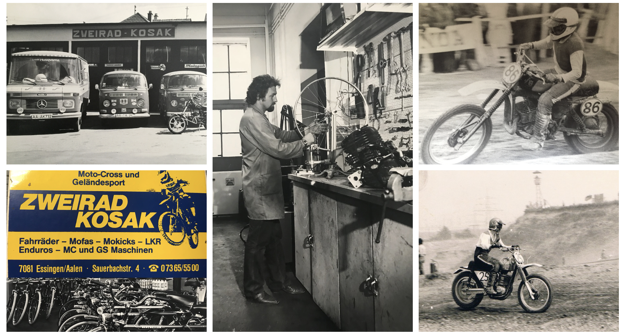 Bereits 1979 legte Kosak den Grundstein als reiner Zweiradhändler mit klarem Fokus auf Motocross-Motorräder. Marken wie Husqvarna Motorcycles und Kawasaki Motors prägten die Anfangsjahre. Schon früh entwickelte sich Kosak zu einem ausgewiesenen Offroad-Spezialisten, bei dem Kompetenz und Rennsportleidenschaft Hand in Hand gingen.